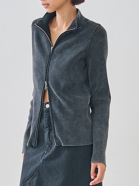 Wジップ仕様で着こなし自在。細見えリブと程よいヴィンテージ感が魅力で、羽織にも一枚着にも対応。軽やかな着心地で春まで長く活躍する万能カーデ。