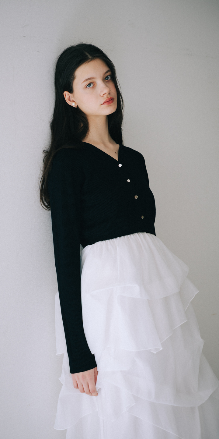 「カーディガン×ニットドッキングチュールワンピースセット」