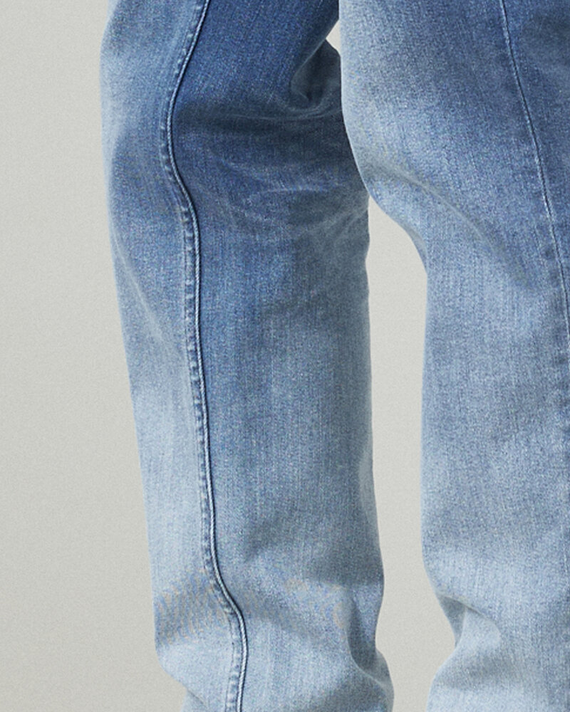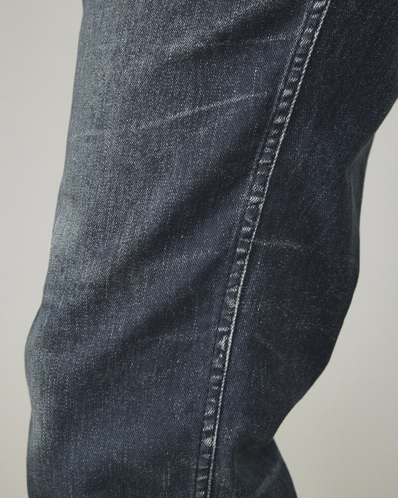 9.1Ozストレッチデニム素材を使用。柔らかく、優れたストレッチ性で快適に着用いただけます。ワンウォッシュ加工を施すことで表面上の糊が取れ、適度なインディゴ染料も一緒に洗い流した使い勝手のいい素材。