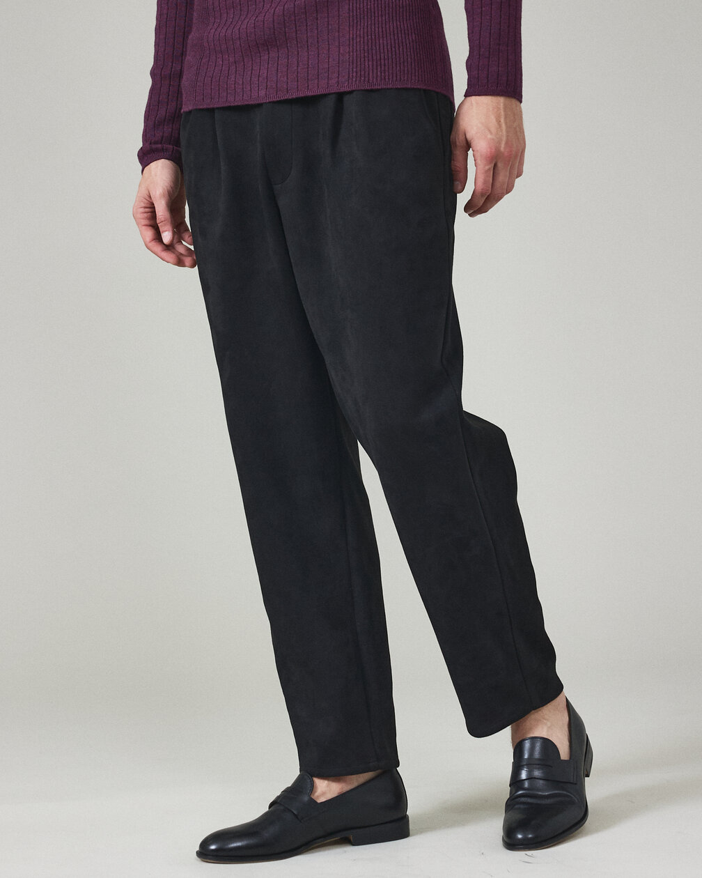 Stretch suede tapered pants