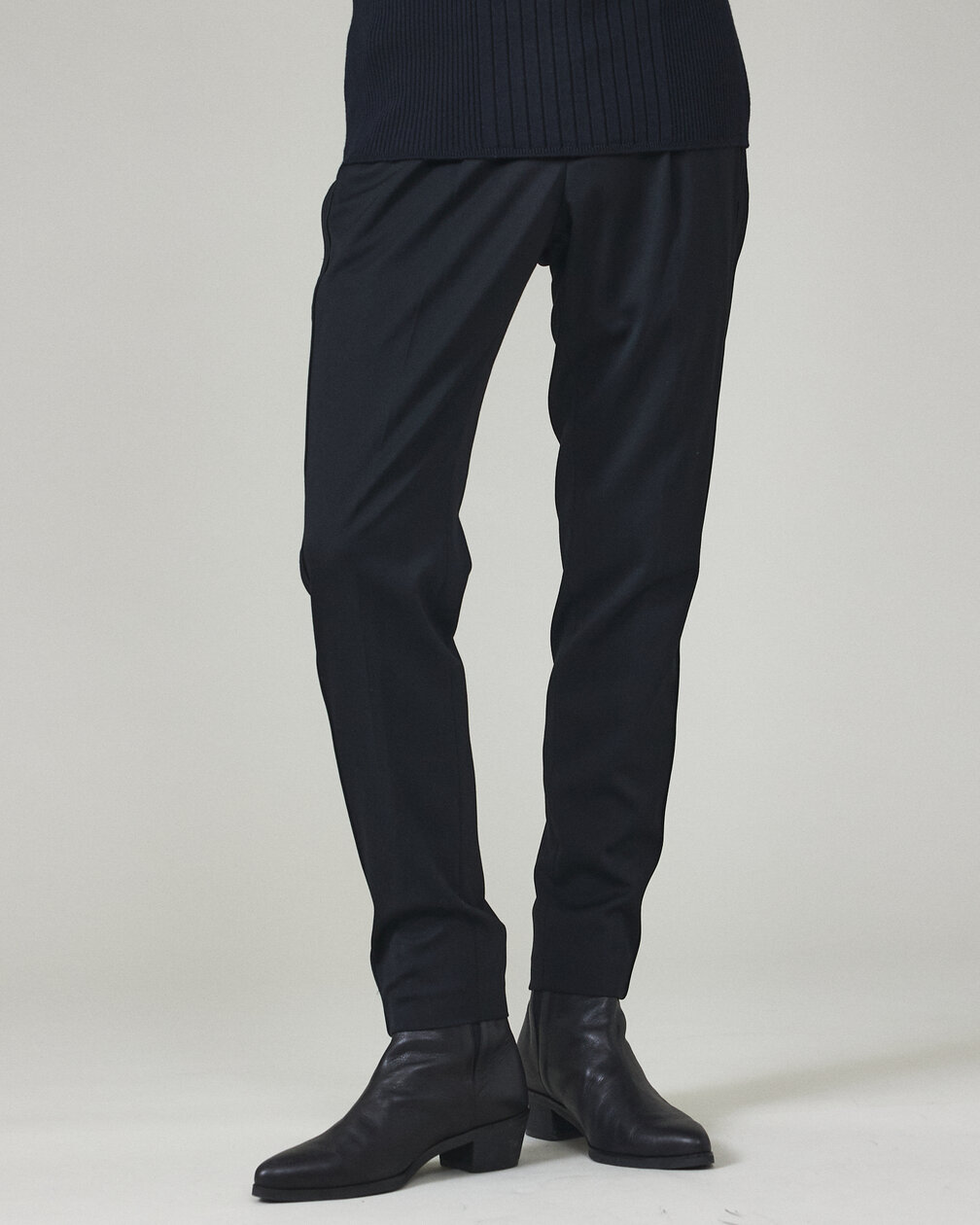 きれいめでしっかりとした厚みのあるストレッチスエードを使用。ジャージー素材で抜群のストレッチが特徴的です。