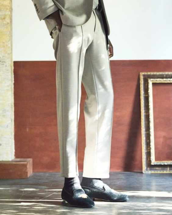 ジャケットやシャツと合わせるだけで洗練された印象に。