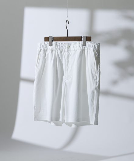 同じく「THE SAINTNINE TOKYO」とのコラボレーションによるショートパンツ。適度なゆとりを持たせたシルエットが、動きやすさと洗練された印象を両立します。シルキーな光沢と自然なストレッチ性を備えた素材により、アクティブなシーンでも快適な穿き心地に。同素材のポロシャツと合わせることで、統一感のある上質なスタイルが完成します。カジュアルでありながら、品よく整う一着です。