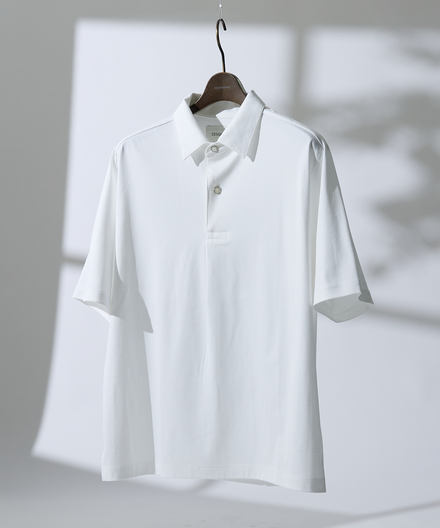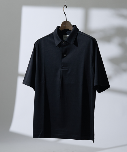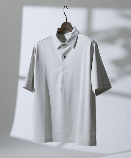 ボタンの開閉によって印象を変えられる、2WAY仕様のポロシャツ。開ければ軽やかな抜け感を、閉めれば端正な佇まいを演出します。シルキーな光沢と上品なハリが、カジュアルなアイテムでありながら品格を保ち、オン・オフを問わず幅広いシーンに対応します。