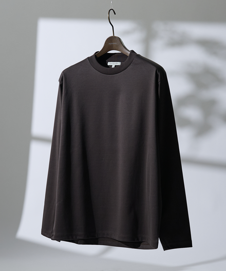 ハイバック仕様の首元が生み出す、安定感のあるシルエット。長袖でありながら軽やかな着心地で、シーズンを通して快適に着用いただけます。一枚での着用はもちろん、ジャケットのインナーとしても美しく馴染み、落ち着きのある大人のスタイルを完成させます。