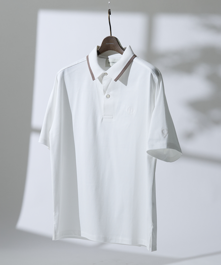 会員制ラグジュアリーゴルフ場「THE SAINTNINE TOKYO」とのコラボレーションによって生まれた、特別な一着。限られた背景が醸し出す、控えめでありながら印象に残る存在感が魅力です。シルキーな光沢とナチュラルな伸びを備えた素材に、襟元のラインがさりげないアクセントに。ボタンの開閉によって表情を変えられる2WAY仕様で、シーンに応じた着こなしが可能です。スポーティさと上品さを兼ね備え、日常の装いを一段引き上げるポロシャツです。